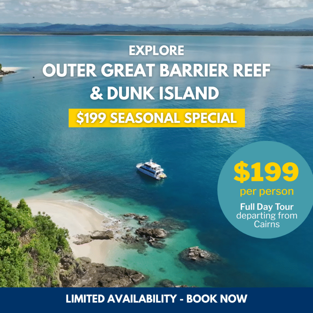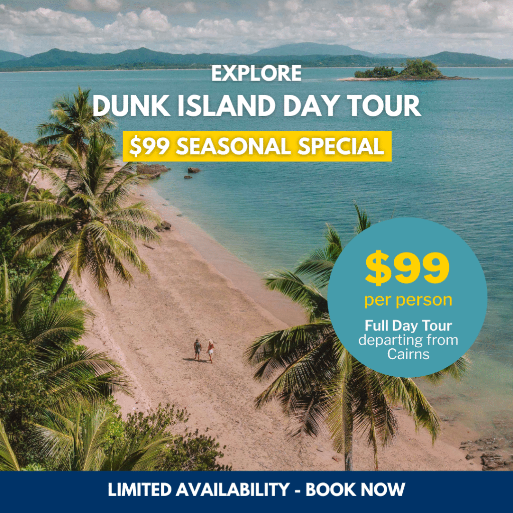 On the return journey, enjoy a one-hour stop at Dunk Island—perfect for a leisurely beach walk or simply relaxing under the palms.